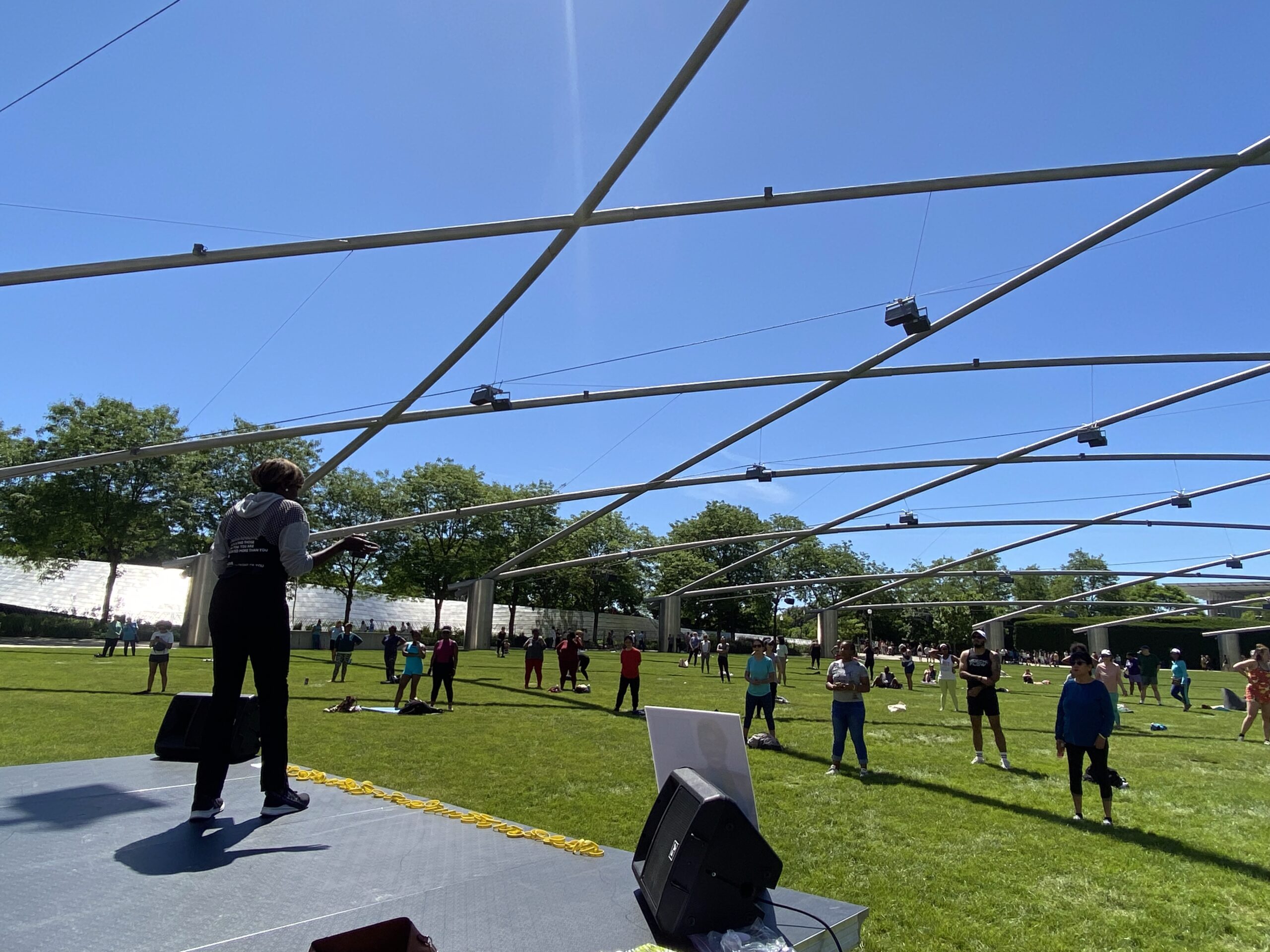 Chicago, IL – May 25th, 2024 – Fitness enthusiasts and dance lovers gathered at Millennium Park’s Great Lawn for a high-energy Zumba session led by the dynamic Iris T. London. The event, held from 11:30 AM to 12:15 PM, turned the Jay Pritzker Pavilion into a vibrant dance floor, with participants of all skill levels moving to infectious Latin and international rhythms.